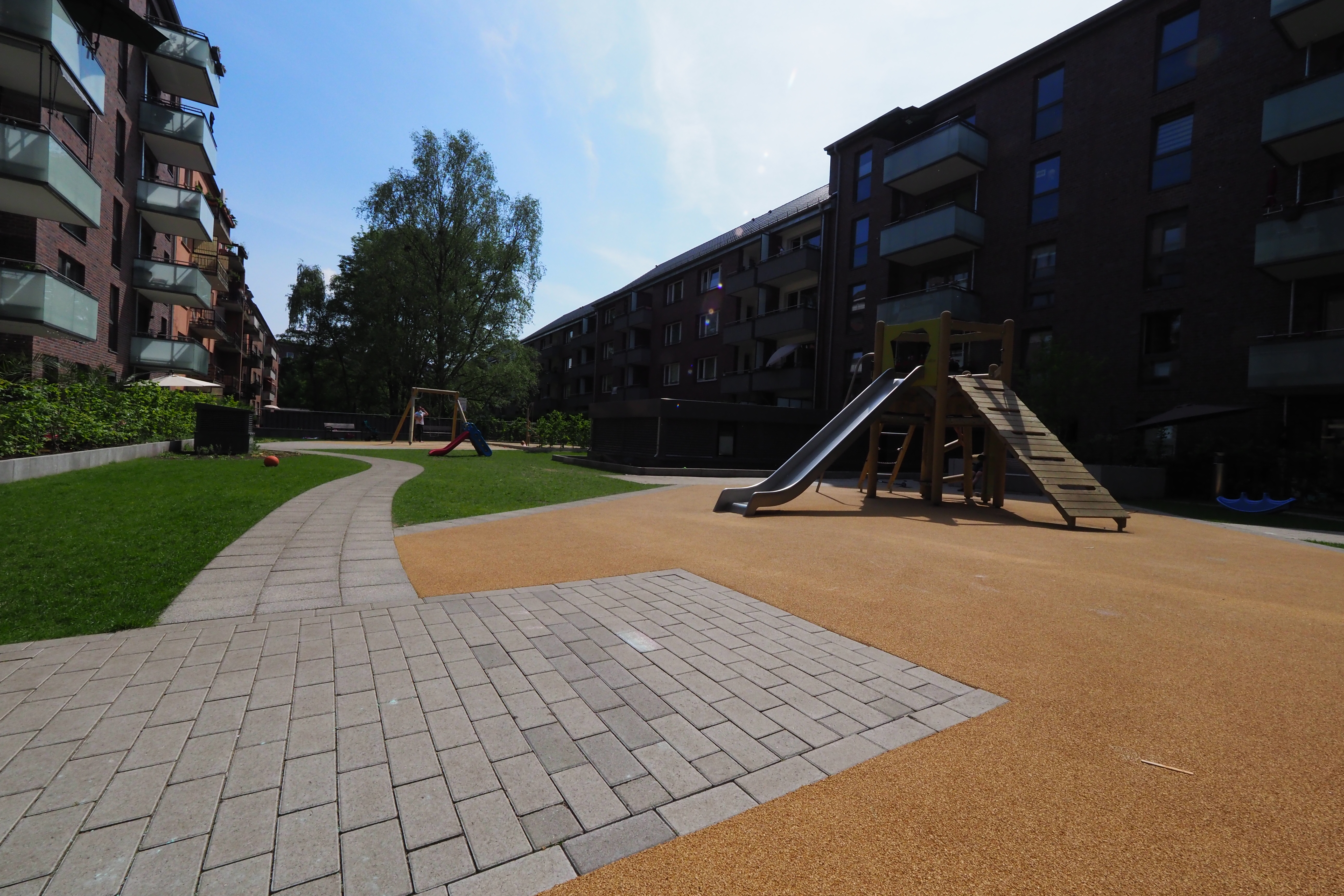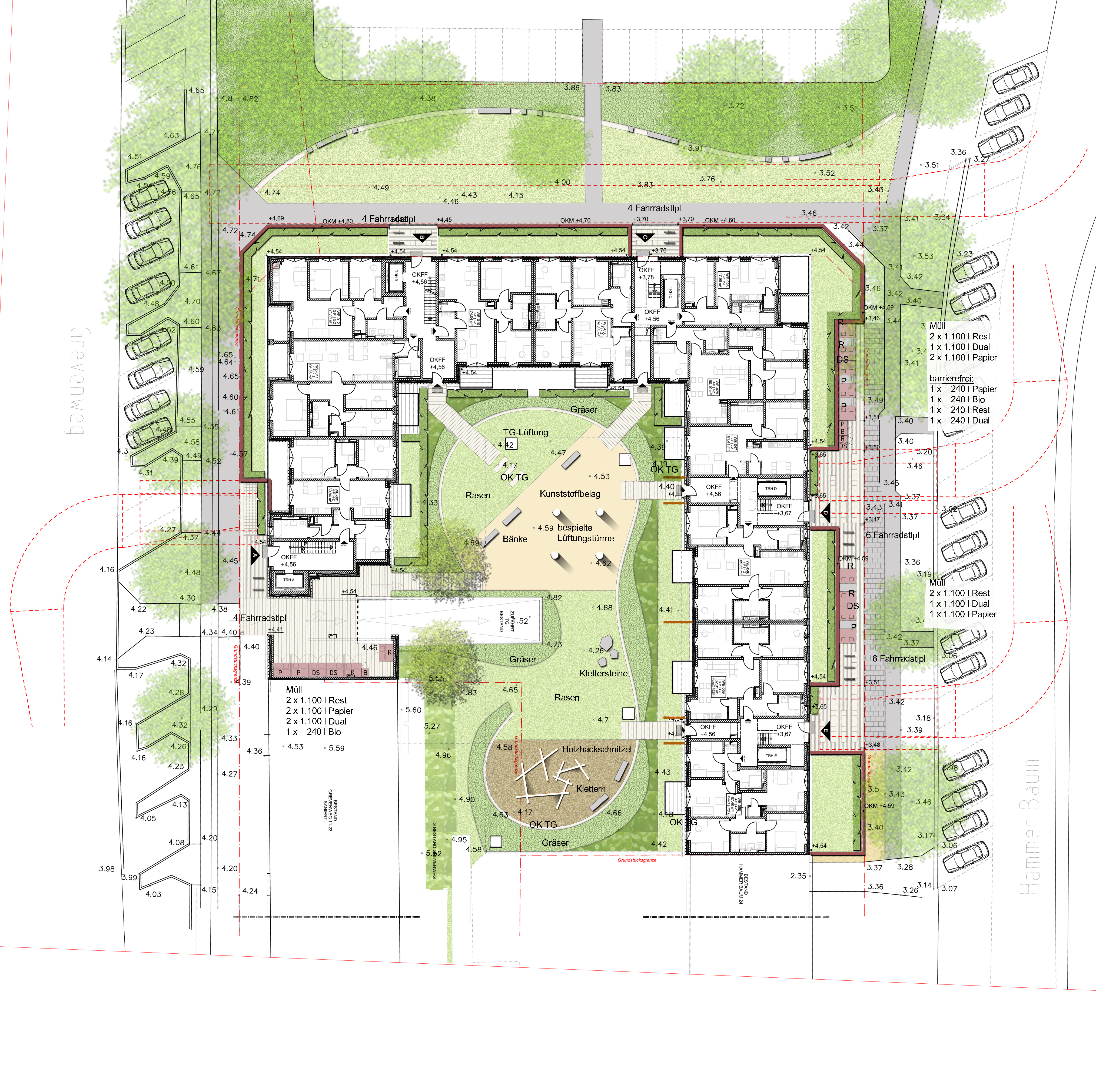 Eingangsbereiche, Innenhof mit Spielflächen und private Terrassengärten